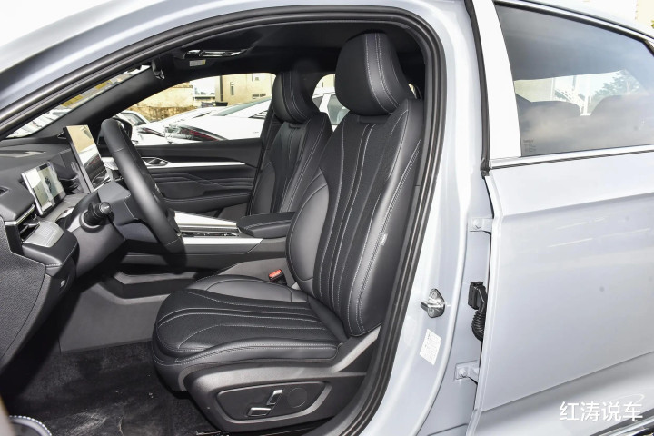 整车长宽高分别为4785*1869*1469毫米,轴距为2800毫米,尺寸在紧凑型轿车中是越级的表现,前排主副驾驶座椅是电动调节,带有座椅加热和通风功能,身高1.78米的体验者坐在后排,腿部空间超2拳的距离,并排坐满3名成年人,横向空间不会拥挤,只是头顶空间受到了点溜背设计的影响,有3指的余量。